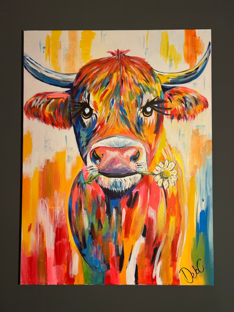 Debbie loves painting. Each piece she creates is a vibrant blend of colour, beauty, emotion, and fun. Debbie creates every painting by hand using acrylics on canvas, and adds a smile to each cheeky character.